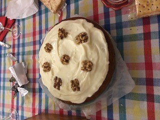 De volgende ochtend heb ik lekker geslapen tot negen uur en toen heb ik met mijn familie in Nederland geskypet. Zij hadden me ook een pakketje gestuurd met allemaal geinige dingetjes. Bijvoorbeeld een verschrikkelijk lange feesthoed, die ik volgens mijn vader de hele dag moest ophouden (niet gedaan hahaha sorry paps). Een super gaaf t-shirt met 'This is what an awesome 18-year old girl looks like'. Ook had mijn zusje allemaal lieve kadootjes voor mij gekocht en opgestuurd; armbandje, ketting, sleutelhanger, thee met kopje en telefoon hoesje. Ik voelde mij die ochtend eindelijk een beetje "echt" jarig, maar alsnog raar om al die kadootjes te ontvangen. Ook heb ik met hun alle kaarten open gemaakt; SUPER BEDANKT LIEVE MENSEN, IK WAARDEER HET ENORM!! Daarna heb ik snel de topping voor de taart gemaakt en alles in een tas gedaan, want we zouden op twee paasdag bij opa en oma lunchen die dichtbij wonen. Snel een beetje mooi aangekleed en huppa de auto in. Bij opa en oma heb ik de taart in elkaar gezet. Daar had de opa de openhaard aan staan want hij was vlees aan het grillen. Ook had de oma drie verschillende soorten gerechten gemaakt; aardappel-kaas-ham schotel, lasagne ragu en een soort paas pizza met spinazie-paprika-ei. Echt super lekker allemaal. Toen we eindelijk na twee uur klaar waren, serveerde ik de worteltaart. Normaal gesproken at de opa niet zoveel taart of toetjes (dat zei de oma), maar van de worteltaart heeft hij letterlijk 3 keer een stuk gegeten. Mijn oma en vader hier twee keer en de rest sowieso één. Mijn jongste zusje vond de topping zo lekker dat zij de kom (waar het in zat) helemaal heeft uitgelikt. Ze zeiden dat ik het vaker mag maken voor hun en dat is totaal geen probleem voor mij hahaha!! Daarna ging ik de kadootjes open maken van de opa en oma en van mijn familie. Ik kreeg een wekker, een fotolijstje met een foto van mij en de famillie, de puppy sokken waarom ik had gevraagd, wat snoepjes en het beste kado ooit: een ukelele!!